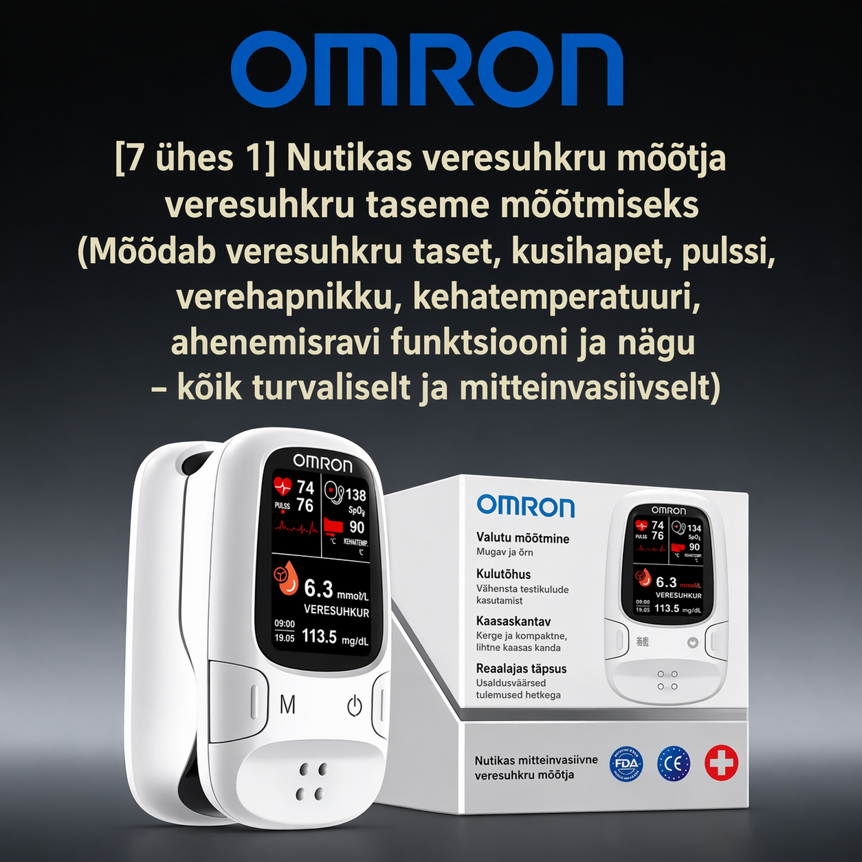 ✅ [7 ühes] Nutikas glükomeeter (Mõõdab veresuhkru taset, kusihapet, pulssi, vere hapnikusisaldust, kehatemperatuuri ning maksa ja neerude talitlust – kõik turvaliselt ja mitteinvasiivselt)